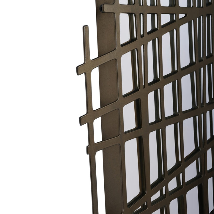 Elevate your interior with this sophisticated wall mirror, featuring an intricate lattice frame finished in warm brass tones. The geometric pattern adds architectural interest to any room while the reflective surface amplifies light and creates a sense of spaciousness. Perfect for hallways, living areas, or bedrooms, this piece combines functional design with contemporary elegance. An ideal accent for modern, or eclectic interiors seeking refined style.