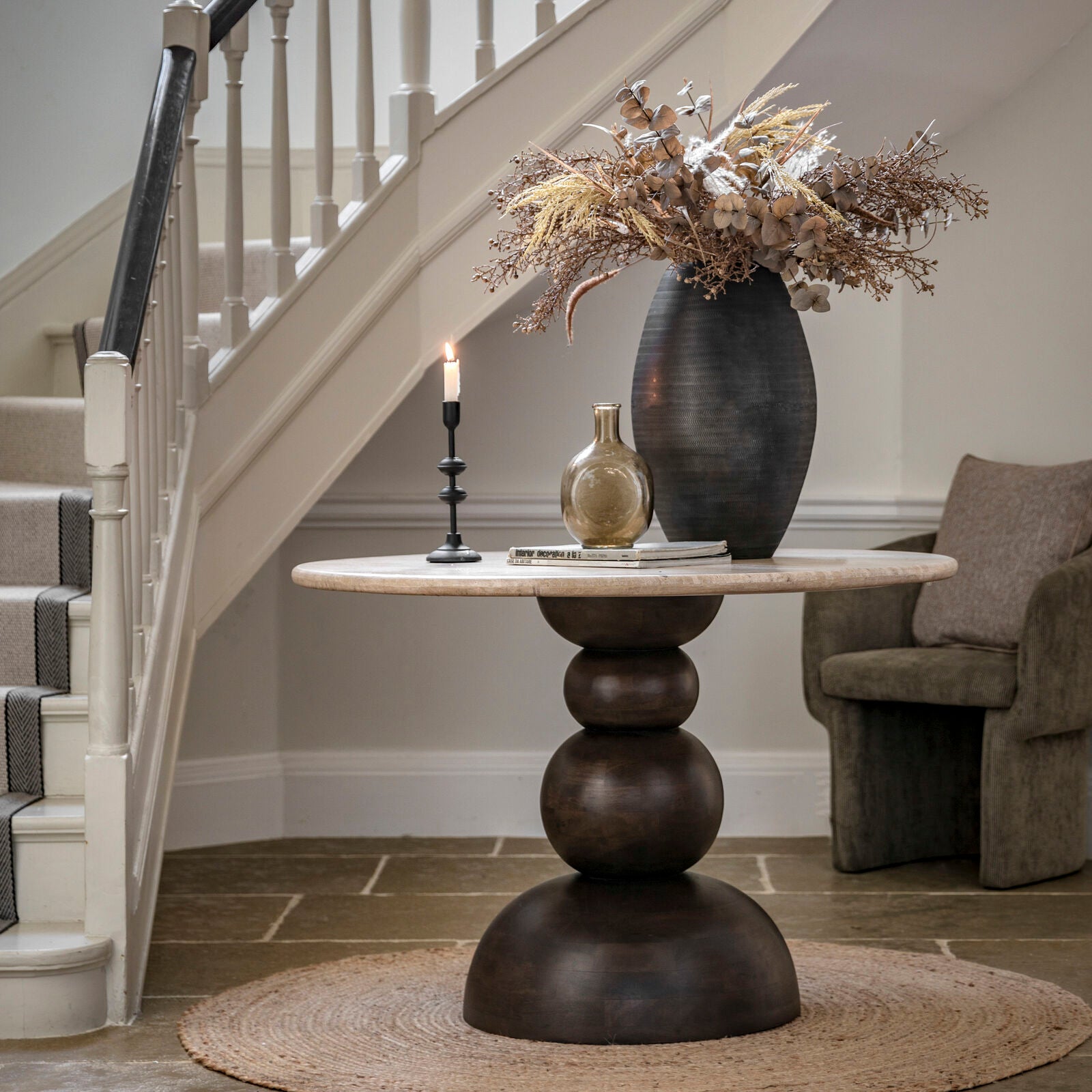 - Materials: Travertine Stone Top