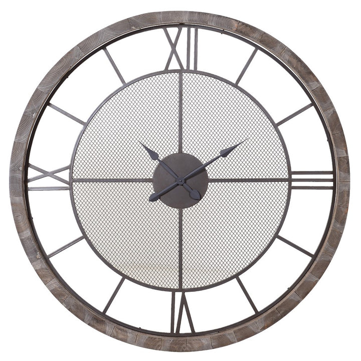 This wooden wall clock features a classic Roman numeral face, blending traditional design with natural materials. The finely crafted wooden frame enhances durability and adds a warm, timeless character to any room.